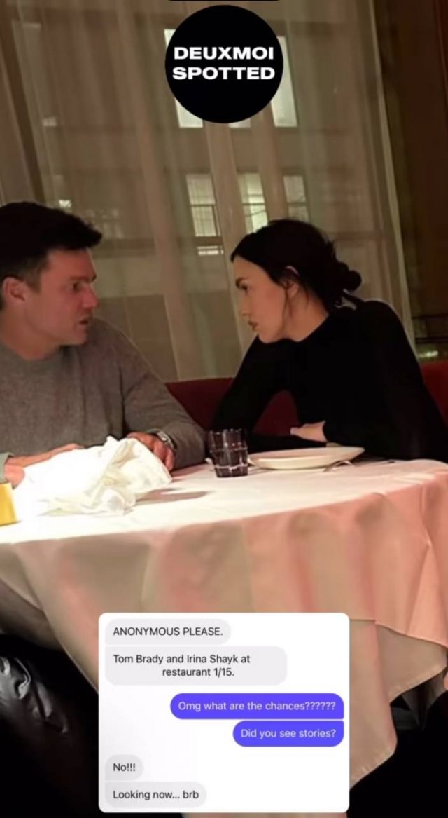 Портал DeuxMoi сообщает, что потенциальную пару видели в ресторане, когда они мило общались. Ирина была в черной водолазке, а Том для такого выхода выбрал серую кофту. Мы, конечно, ни на что не намекаем, но все же сомневаемся в их «просто дружбе».