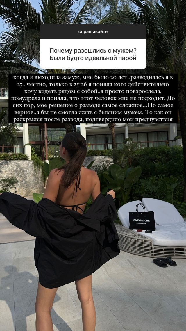«Когда я выходила замуж, мне было 20 лет..разводилась я в 27…честно, только в 25-26 я поняла кого действительно хочу видеть рядом с собой..я просто повзрослела, помудрела и поняла, что этот человек мне не подходит. До сих пор, мое решение о разводе самое сложное…Но самое верное..я бы не смогла жить с бывшим мужем. То как он раскрылся после развода, подтвердило мои предчувствия (орфография и пунктуация автора сохранены — Прим. ред.», — призналась девушка.