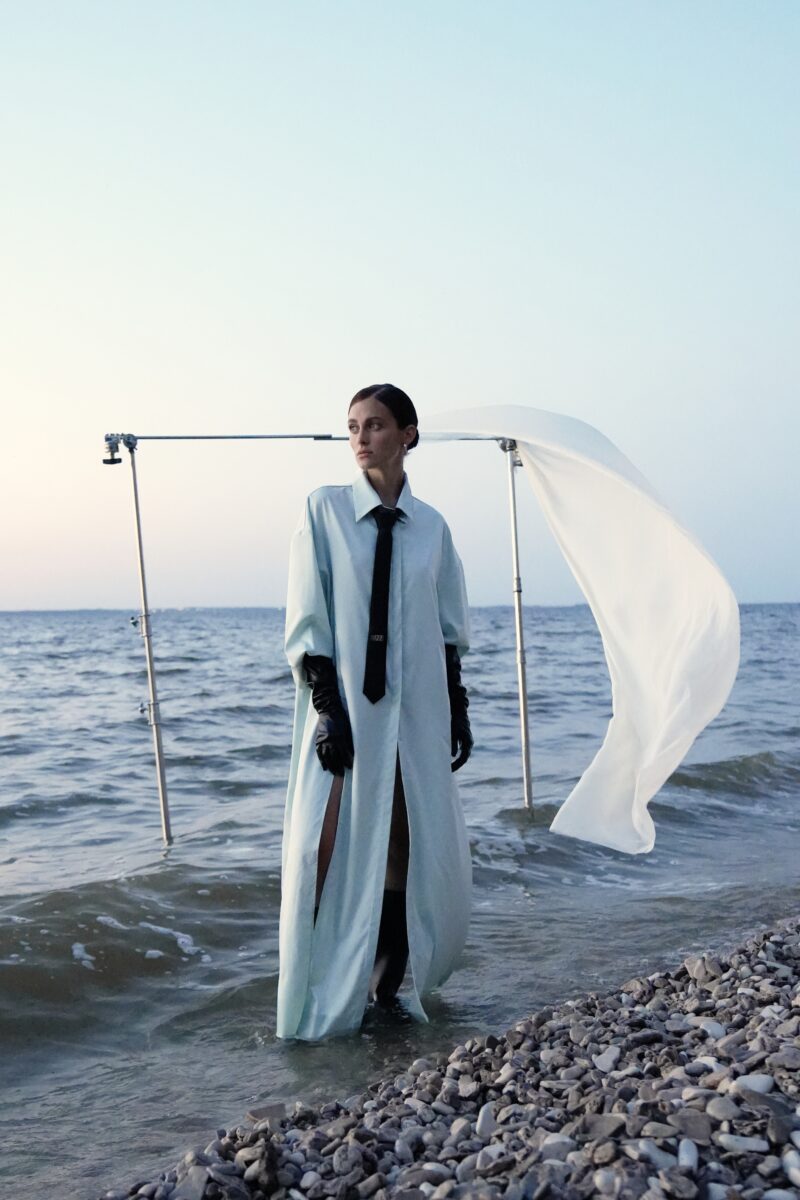 Изделия из новой коллекции помогут каждой женщине эффектно маневрировать между многочисленными ролями, подбирая образы словно тактику, в зависимости от цели. Игривые вырезы на рукавах, бахрома, глубокие складки и драпировка — коллекция продумана до тонких мелочей и меняет настроение женщины, создавая многогранные образы. Классический строгий жакет или платье-пиджак благодаря внутренним вырезам на рукавах способны трансформировать образ и придать ощущение нежности и хрупкости, стоит лишь продеть руки в отверстия.