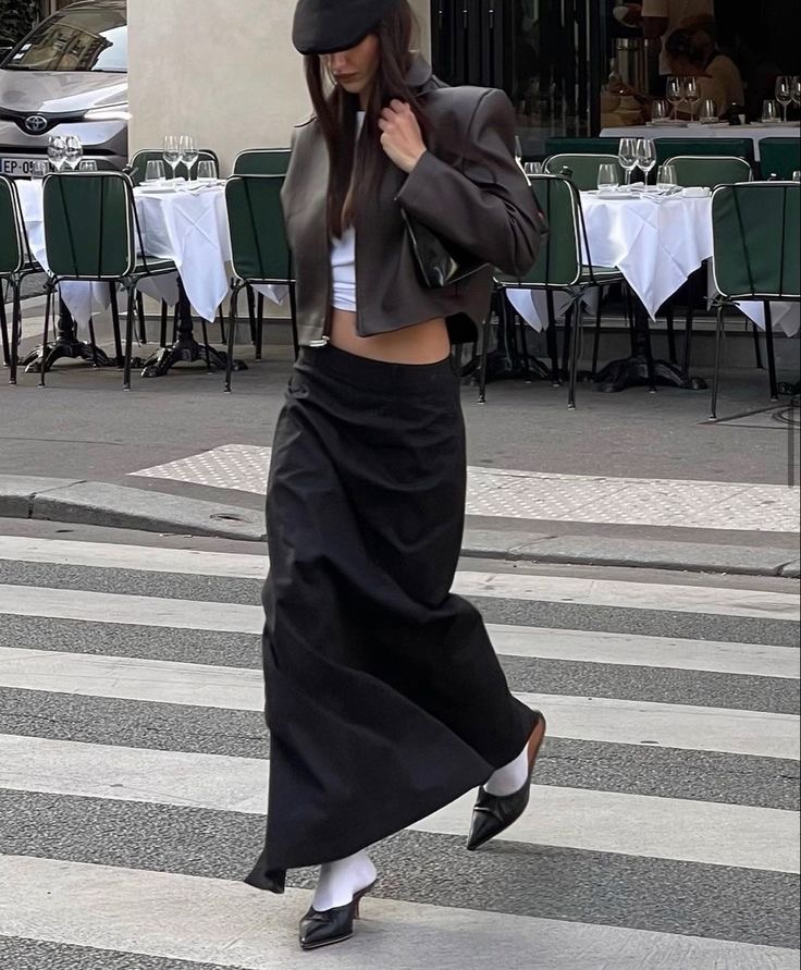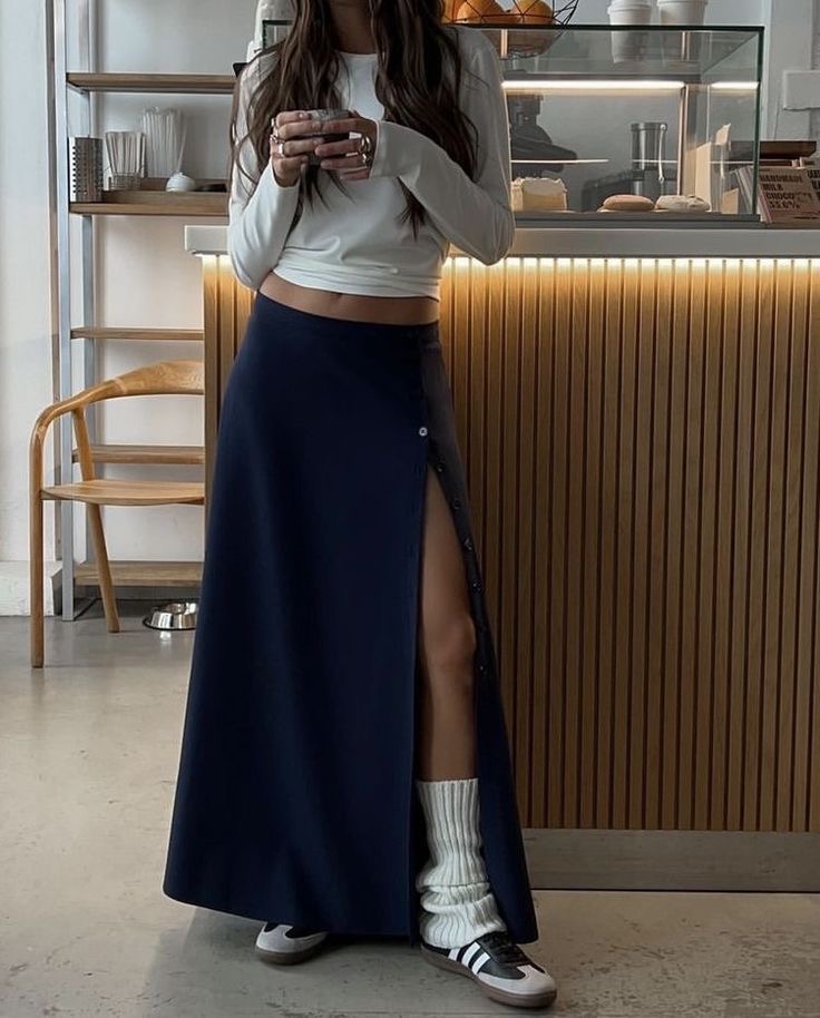 А вот, как юбки на низкой посадке предлагают нам носить и другие модные инфлюенсеры.